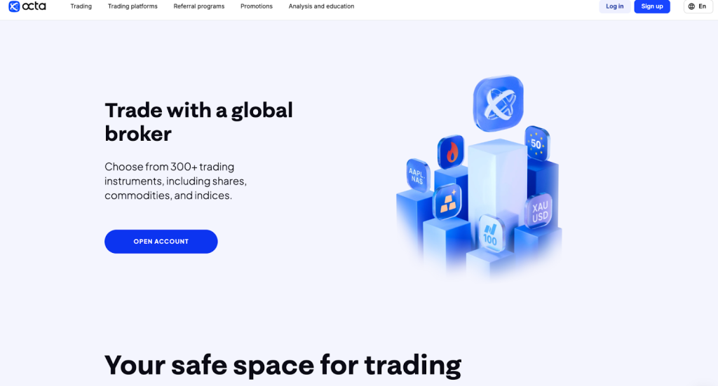 Alt text: OctaFX homepage showing emerging markets broker with copy trading, MT4/MT5 platforms, $25 minimum deposit and localized support for Asia, Africa, Latin America.